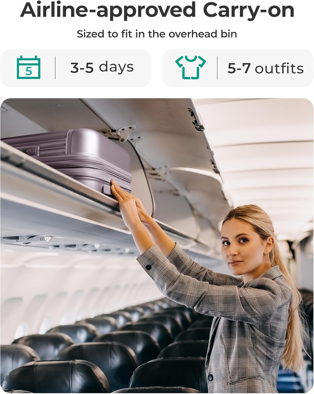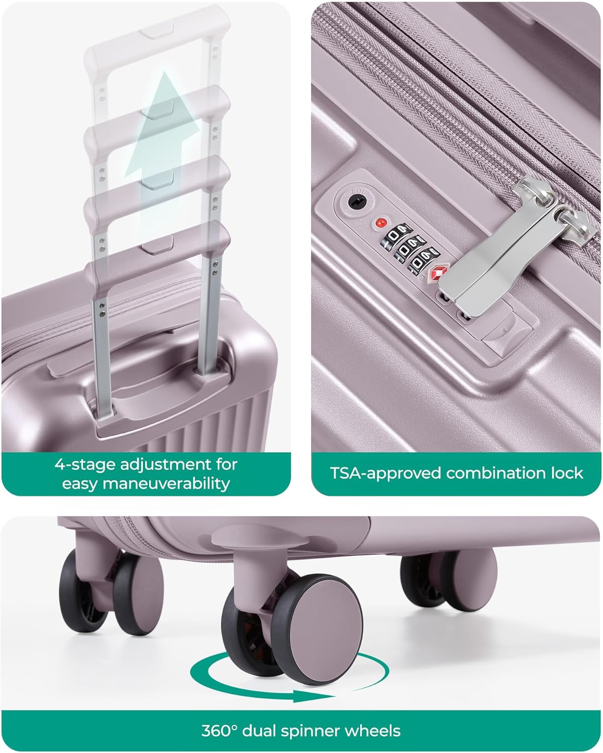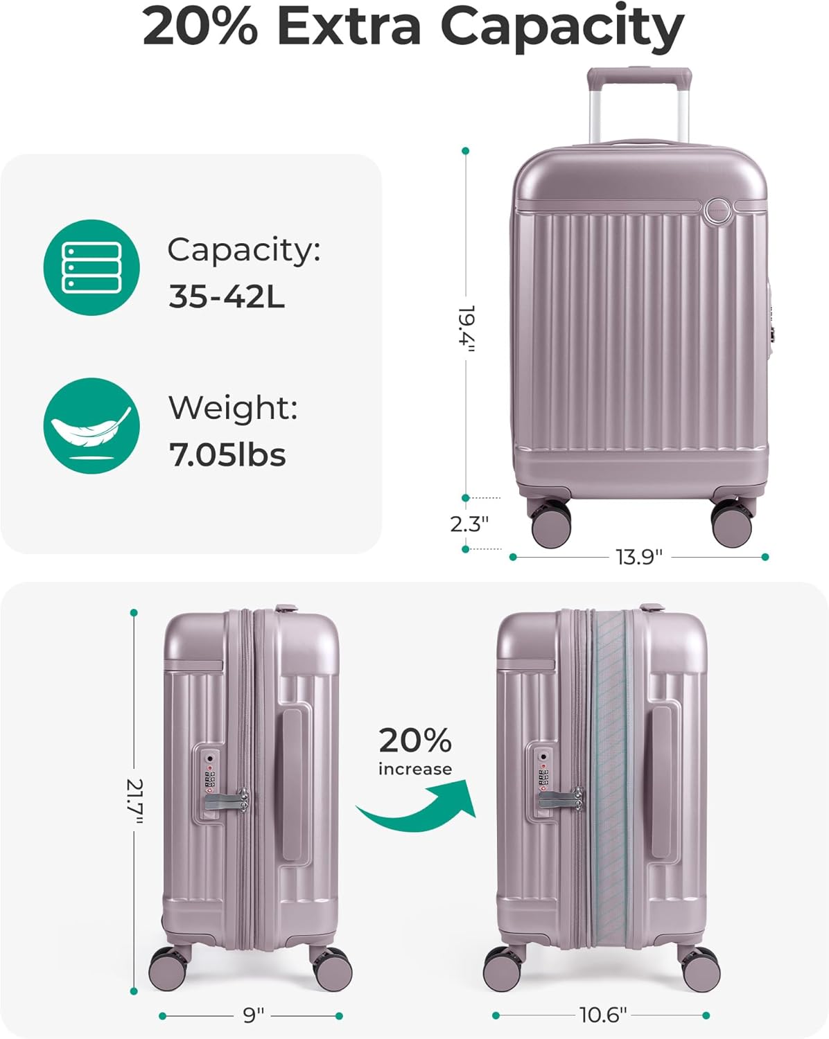 BAGSMART Carry On Luggage 22x14x9 Airline Approved with Spinner Wheels, Travel TSA Approved 100% PC Hard Shell Suitcases, 20 Inch Expandable Luggage with TSA Lock,Purple