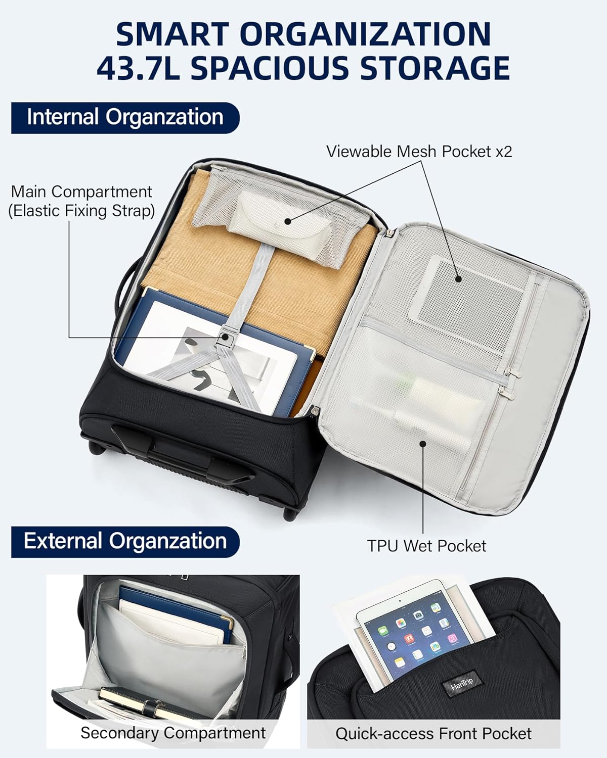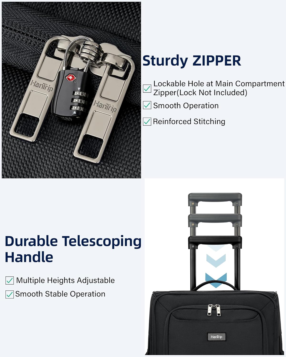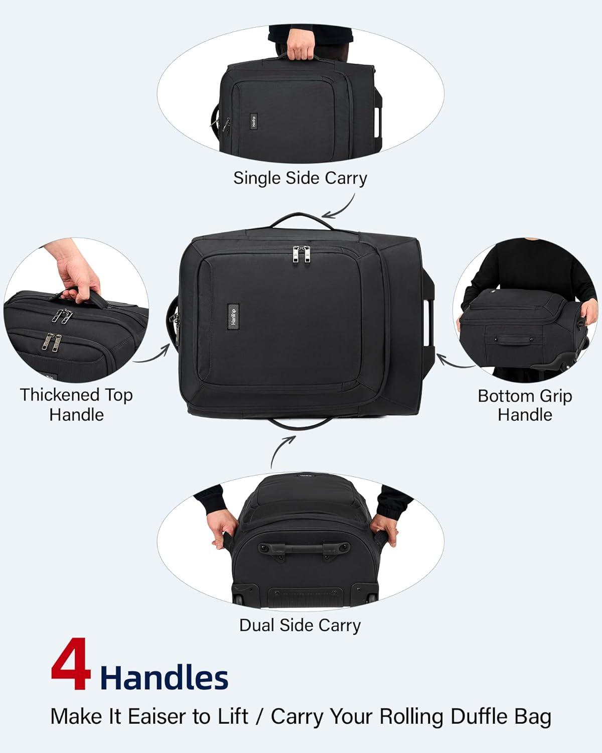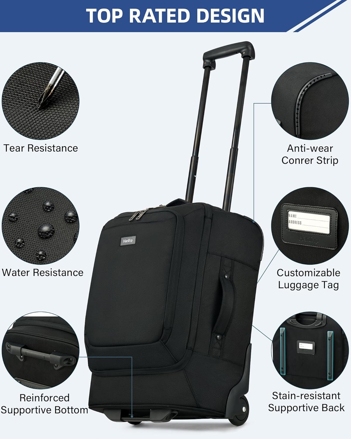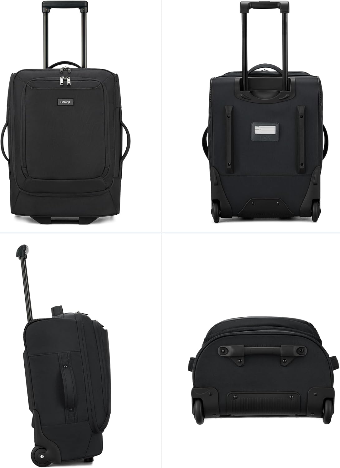 HanTrip Small Rolling Carry On Luggage Suitcases Duffle Bag with Wheels and Handle, 2 Wheeled Soft Sided Heavy Duty Luggage for Travel Carry On Roller Weekender Bag with Wheels for Women Men (Black)