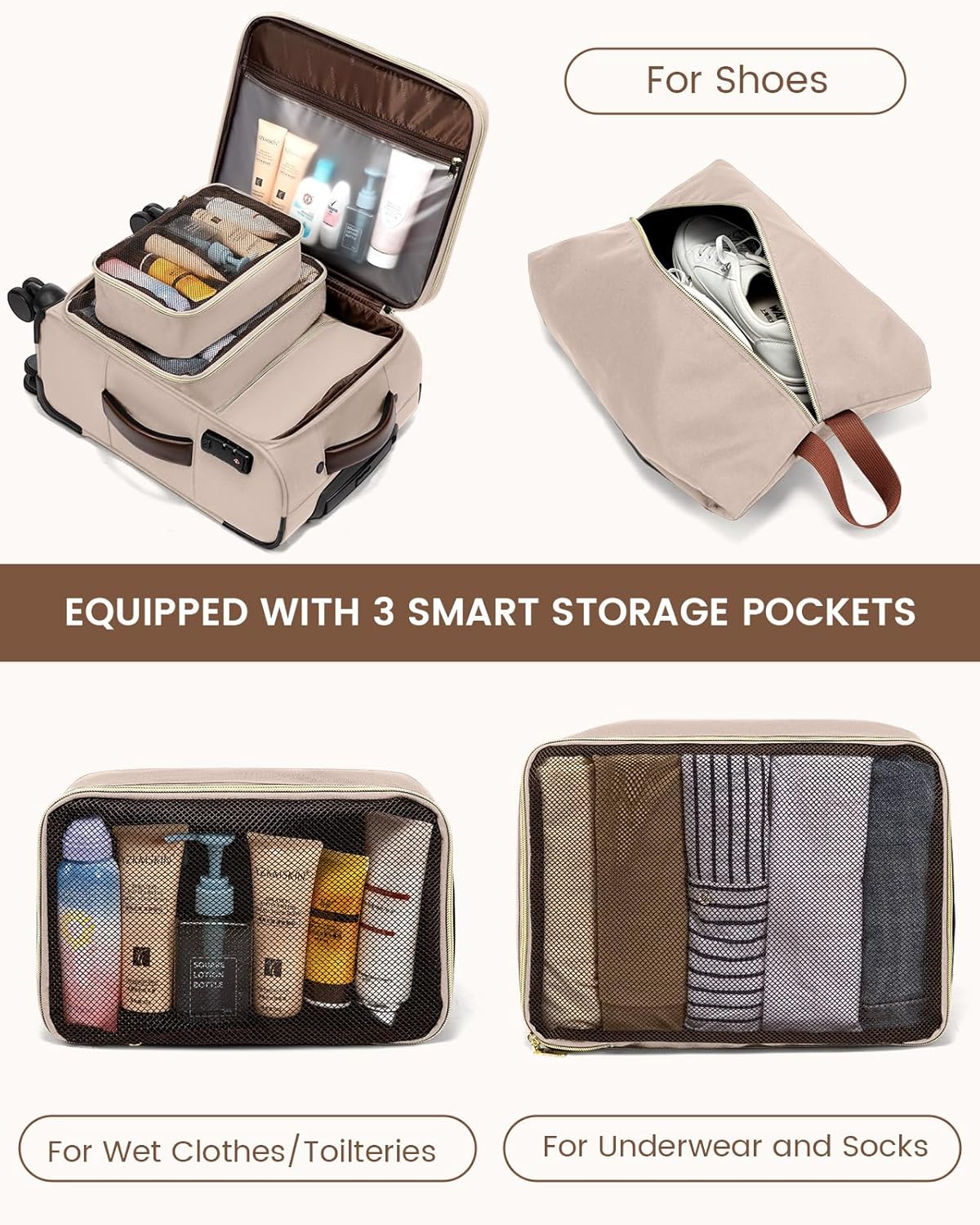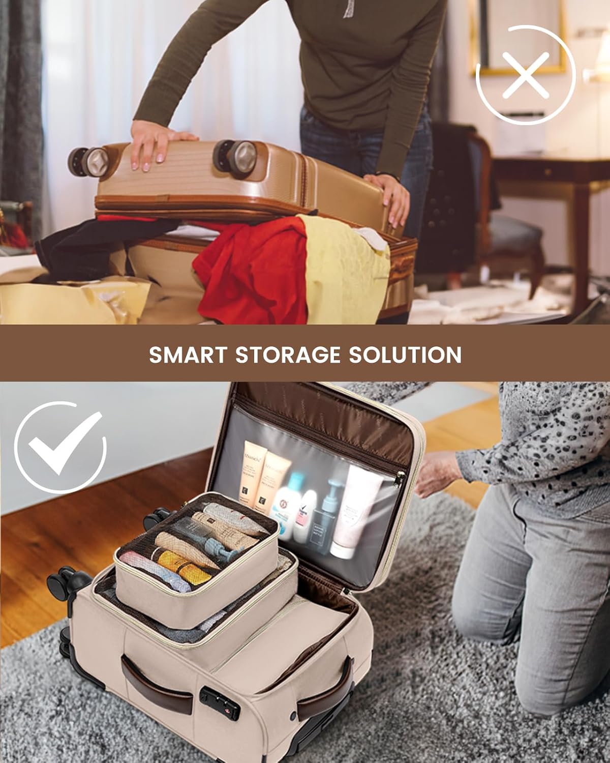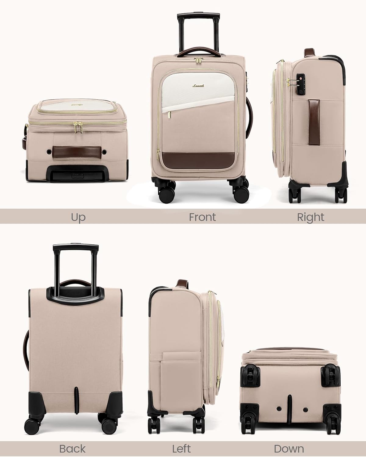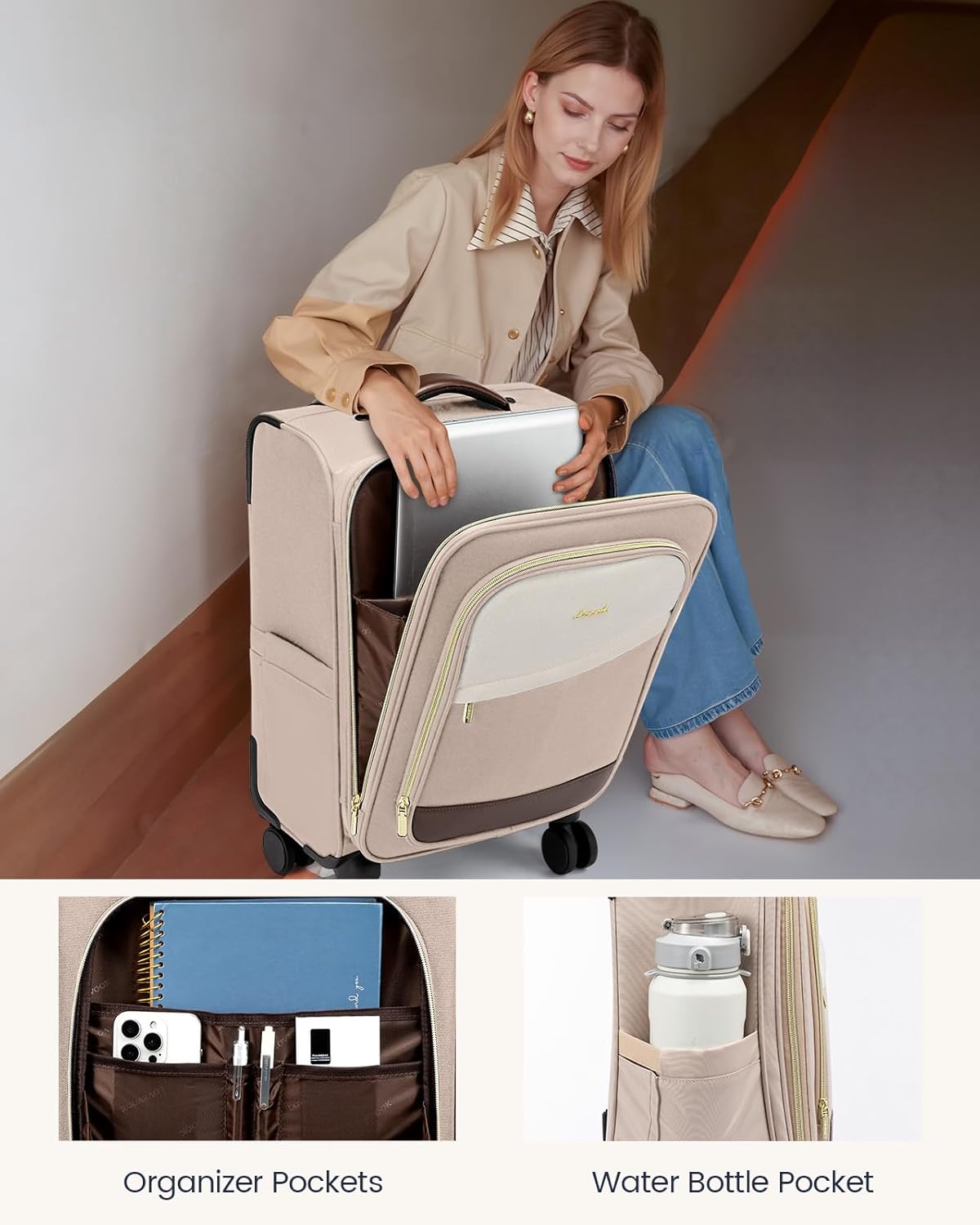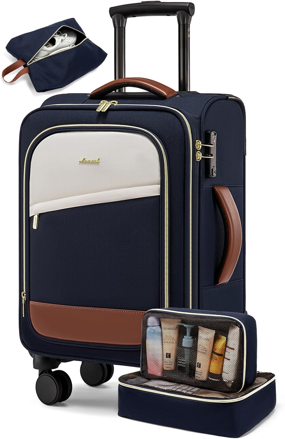 LOVEVOOK 4 Pcs Carry On Luggage 22x14x9 Airline Approved, 20 Inch Carry On Suitcases with Wheels, Softside Rolling Suitcase for Women Men, with TSA Lock Weekender Travel Luggage