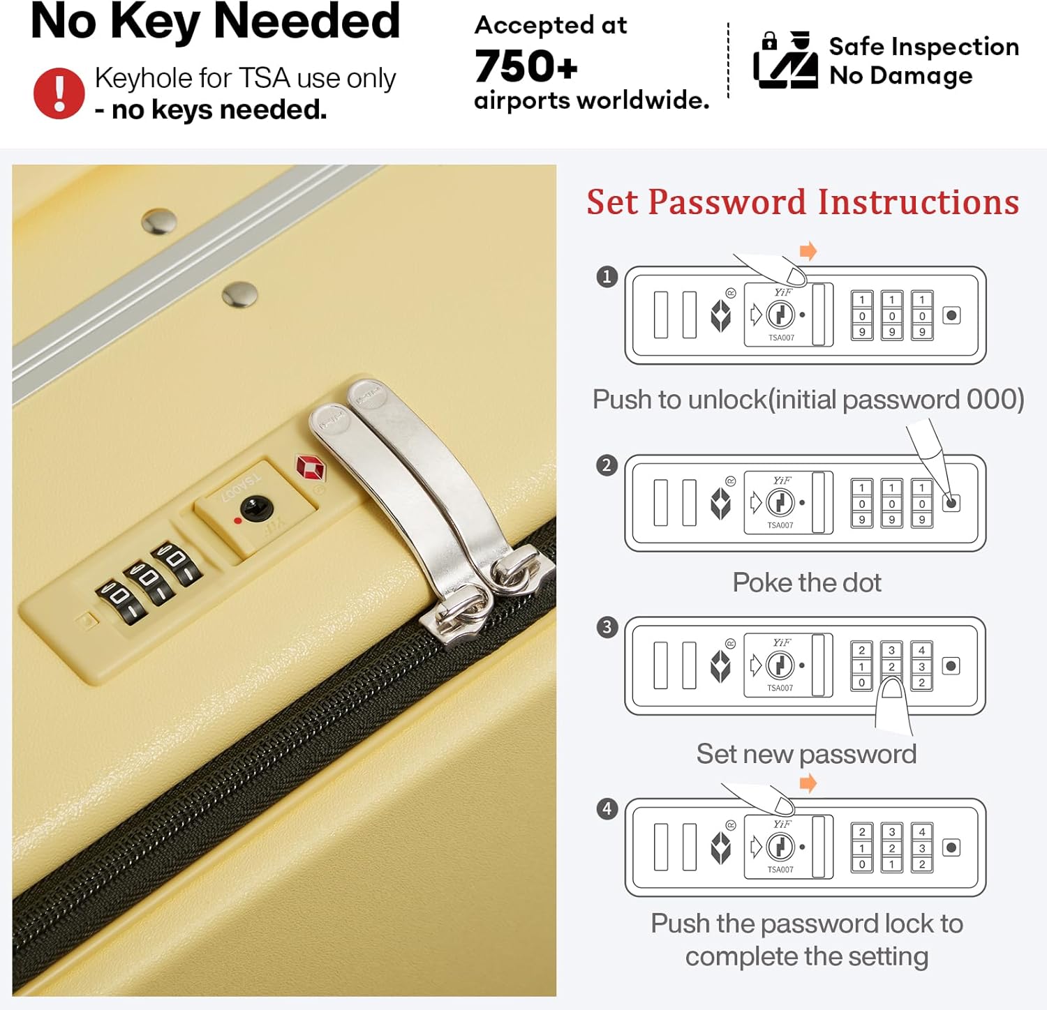 Push-botton locking system, aluminum handle locks firmly into place when extended.