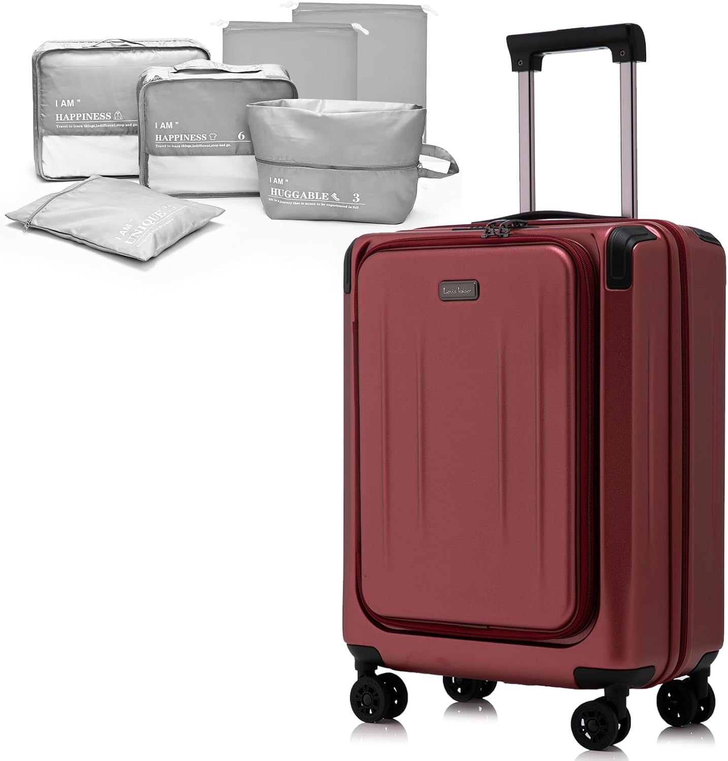Premium Carry On Luggage, 20 Inch Top Opening Aluminum Frame Lightweight Airline Approved ABS+PC Hard Shell Suitcases with Silent Wheels, TSA Lock, Front Pocket and Wet-dry Separated Six-piece Set
