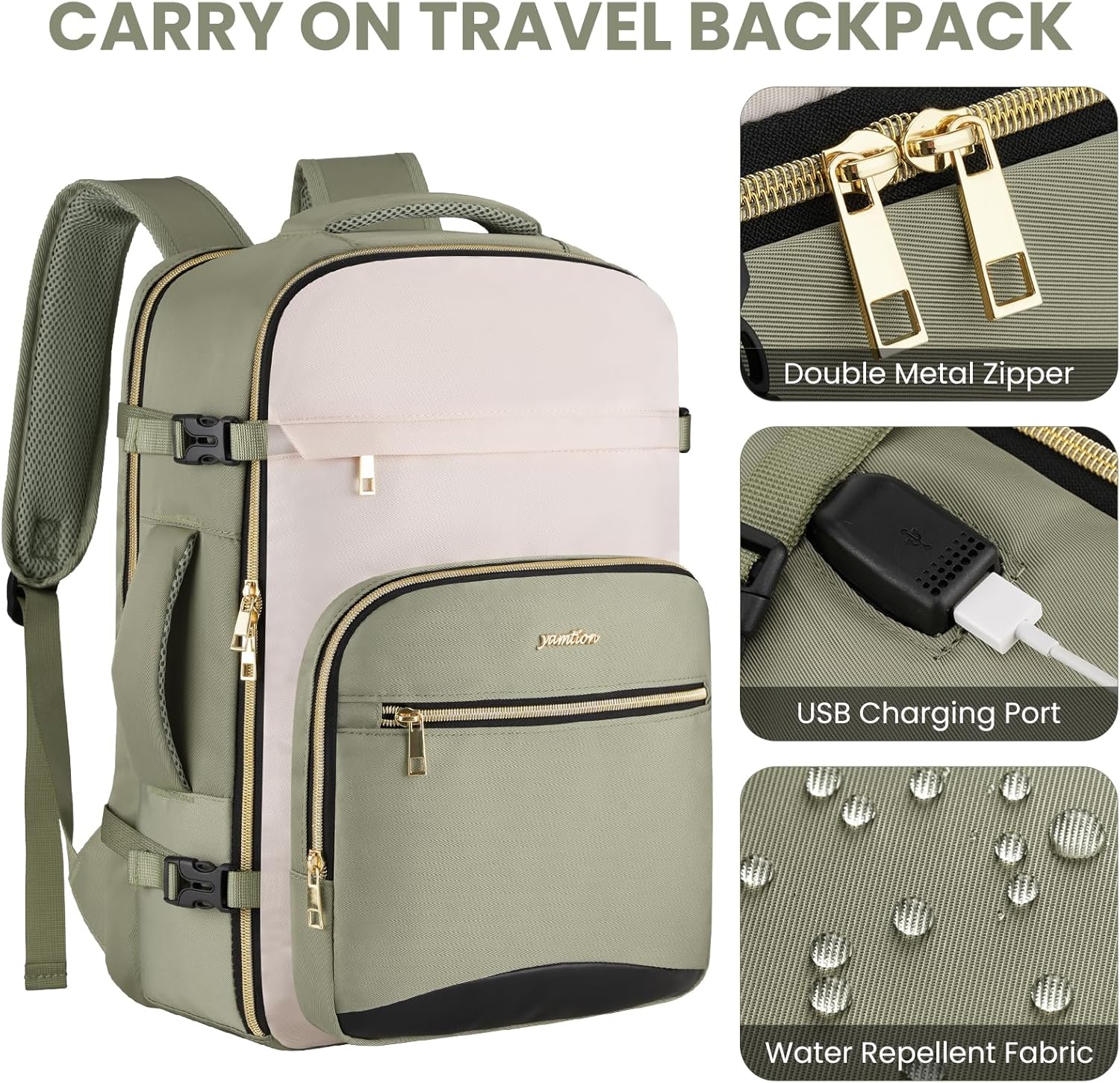 YAMTION 40L Large Travel Backpack for Women,Carry On Luggage with 4 Packing Cubes, Airline Approved Weekender Backpacks for Personal Items fits 17 Inch Laptop